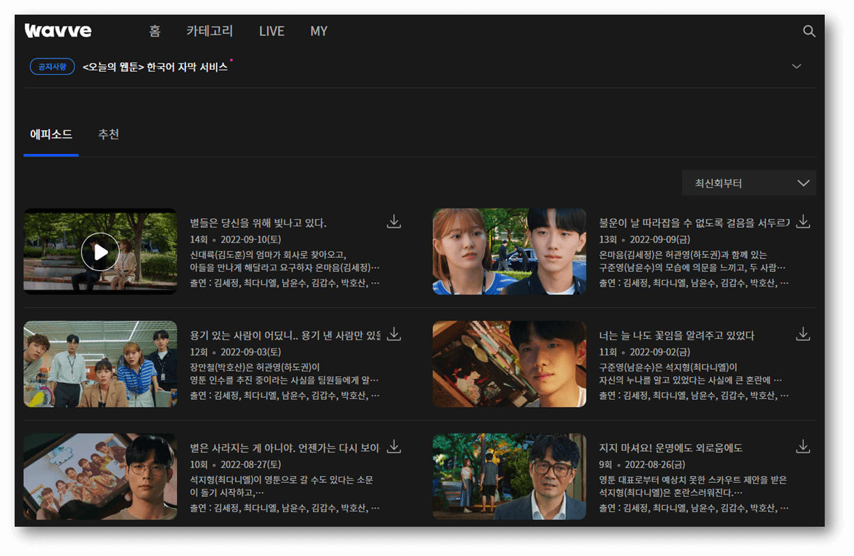 웨이브 오늘의 웹툰 보러가기